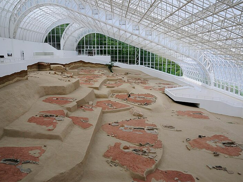 Сва станишта насеља имају облик зарубљеног кружног исечка под углом од 30 до 60 степени. Под је од здробљеног, добро набијеног црвеног кречњака, са елипсоидним ватриштем. Распоред удубљења око пода сугерише кровну конструкцију у виду пресеченог левка или полиедра, која је вероватно била од коже. У насељу су откривена и светилишта која имају исти облик. У унутрашњости су били култни простор и простор за становање.